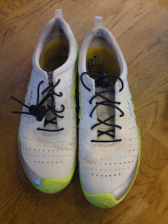 Lade fram löparskorna med upprullade strumpor i så att de skulle vara enkelt att få på, knöt upp skorna lite så det skulle vara enkelt att få ner fötterna där också. Funderade på ifall jag skulle ha cykelskorna fastsatta på cykeln eller bredvid, det fick bli bredvid till slut(var nästan ingen annan som körde på :P). Funderade även på ifall jag skulle köra med nummerlapp under våtdräkten eller ta på den sedan, blev även där det senare alternativet, nästa gång kör jag nog under våtdräkten ändå för att det är smidigare att ha mindre saker att tänka på vid växlingen.